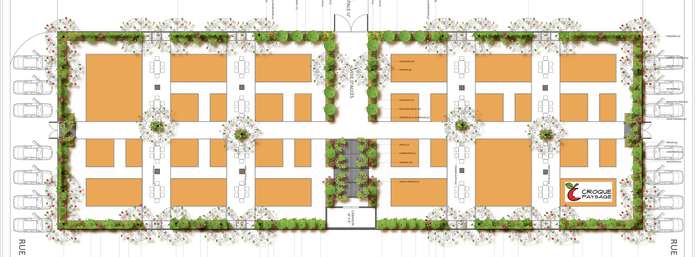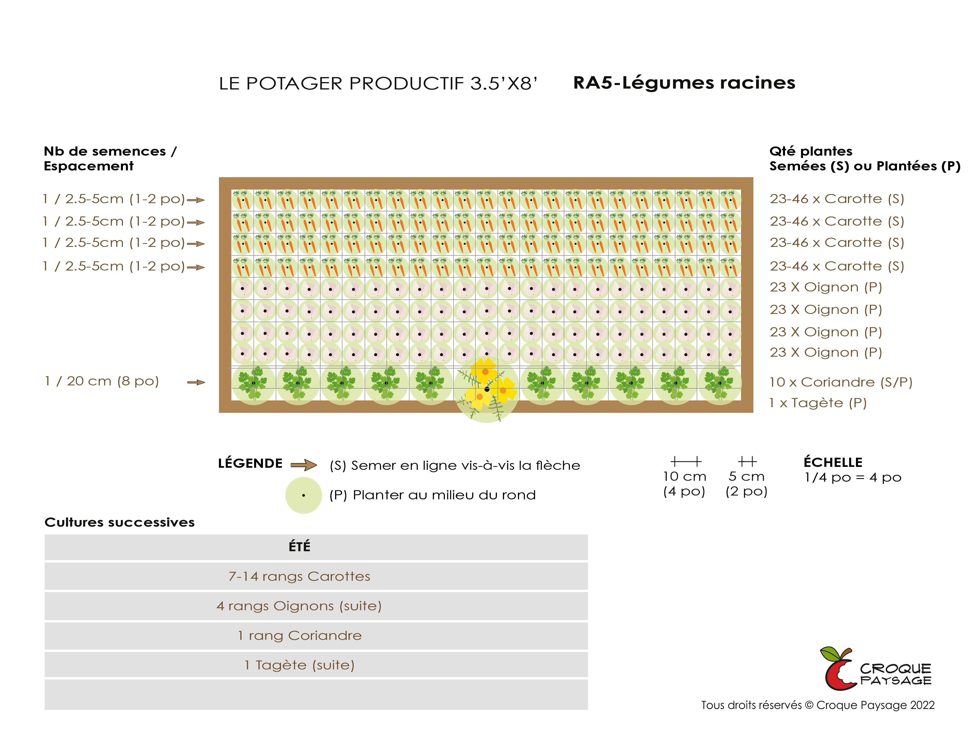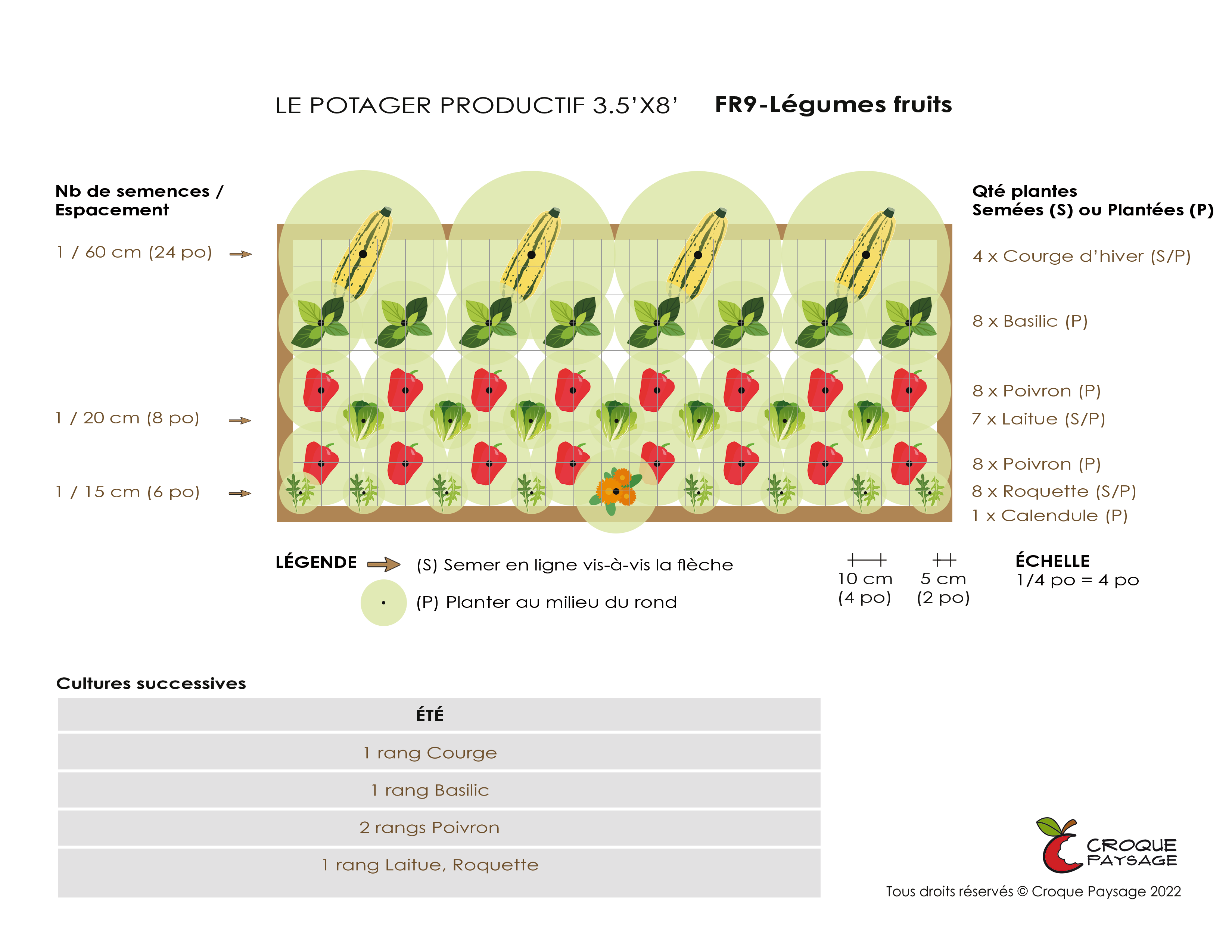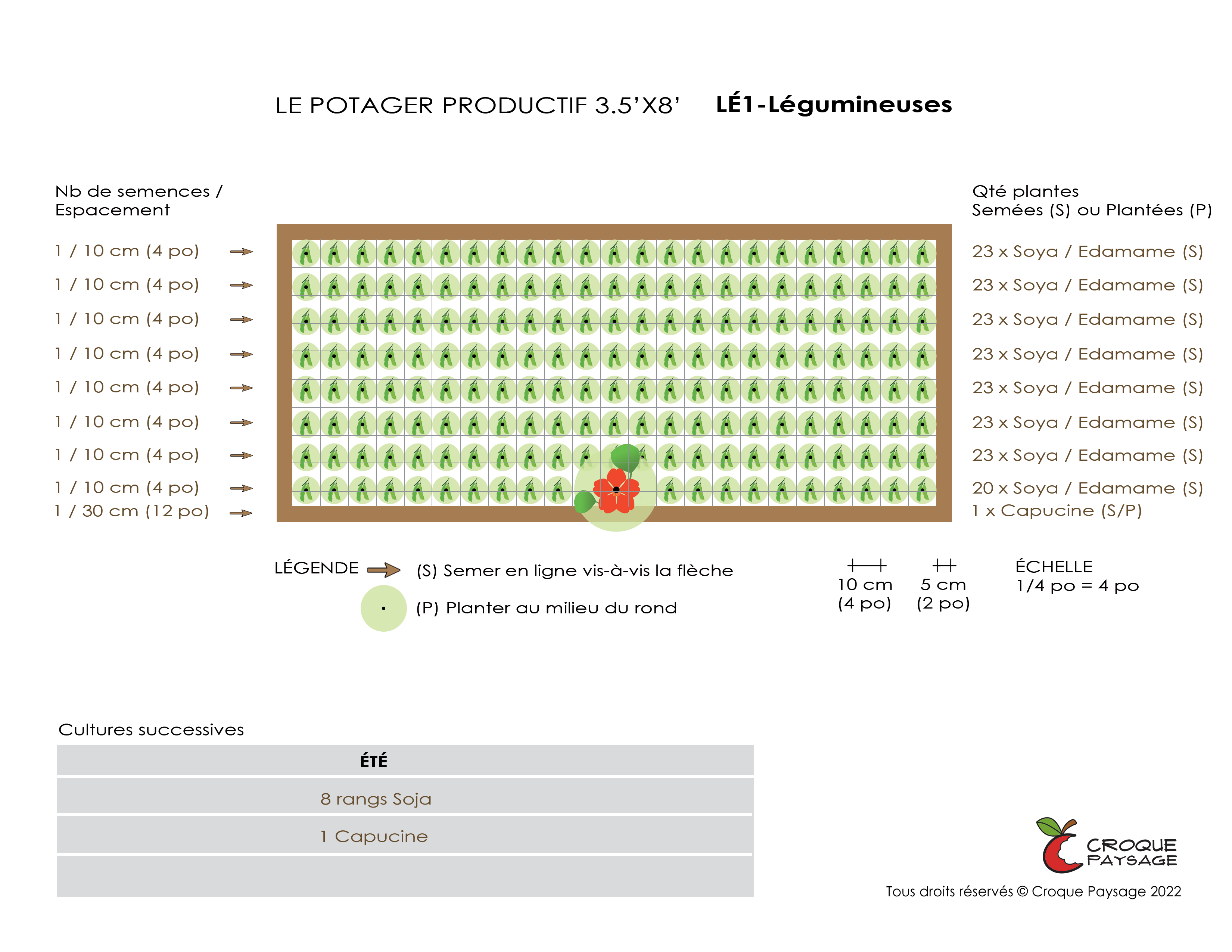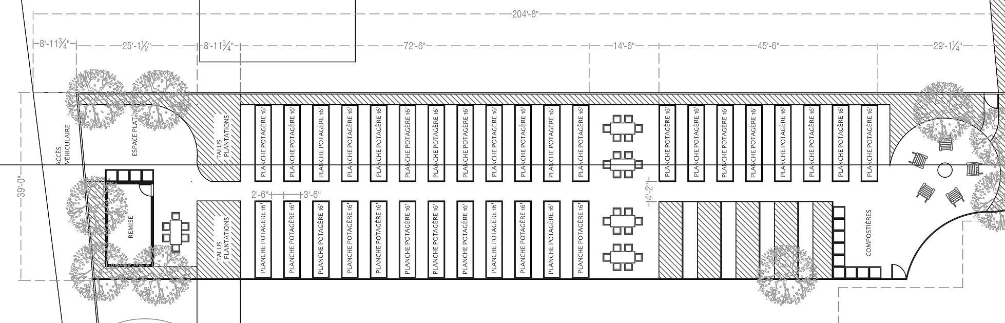 Tel qu'illustré ci-bas, nous pouvons aussi planifier la rotation de cultures des planches potagères projetées, dans un contexte de jardin collectif animé.