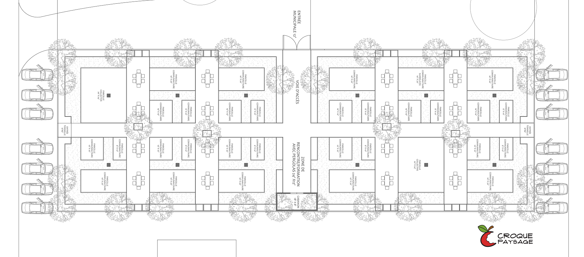 Suite à la saisie de données, nous procédons à l'élaboration des propositions d’organisation de l’espace. Cette étape consiste à projeter l'emplacement possible des différentes zones d’activités, de circulation, de plantations de vivaces comestibles et de planches potagères.