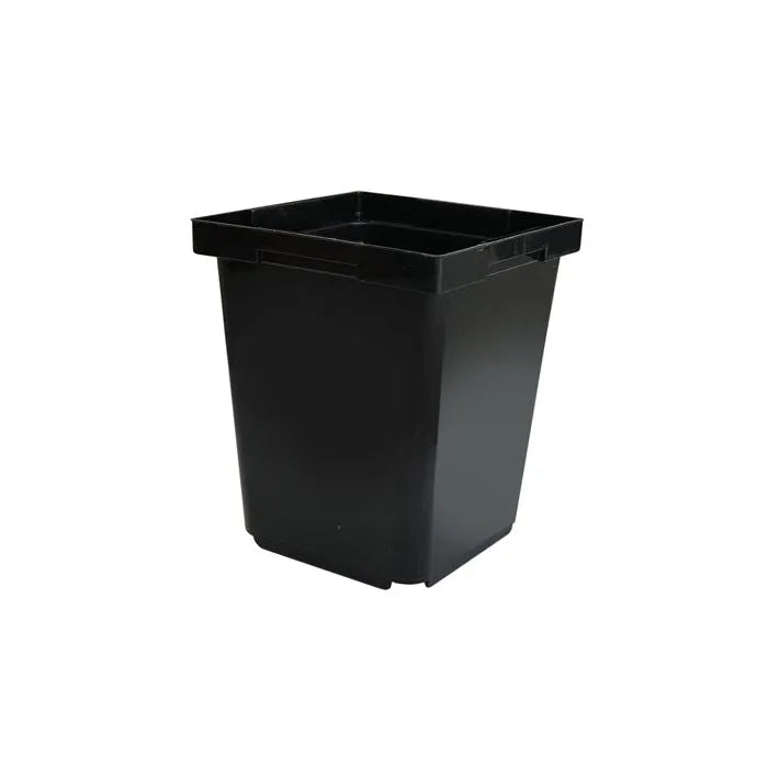 Pot carré de 14cm (5.5po) de large par 15cm (6po) de haut.